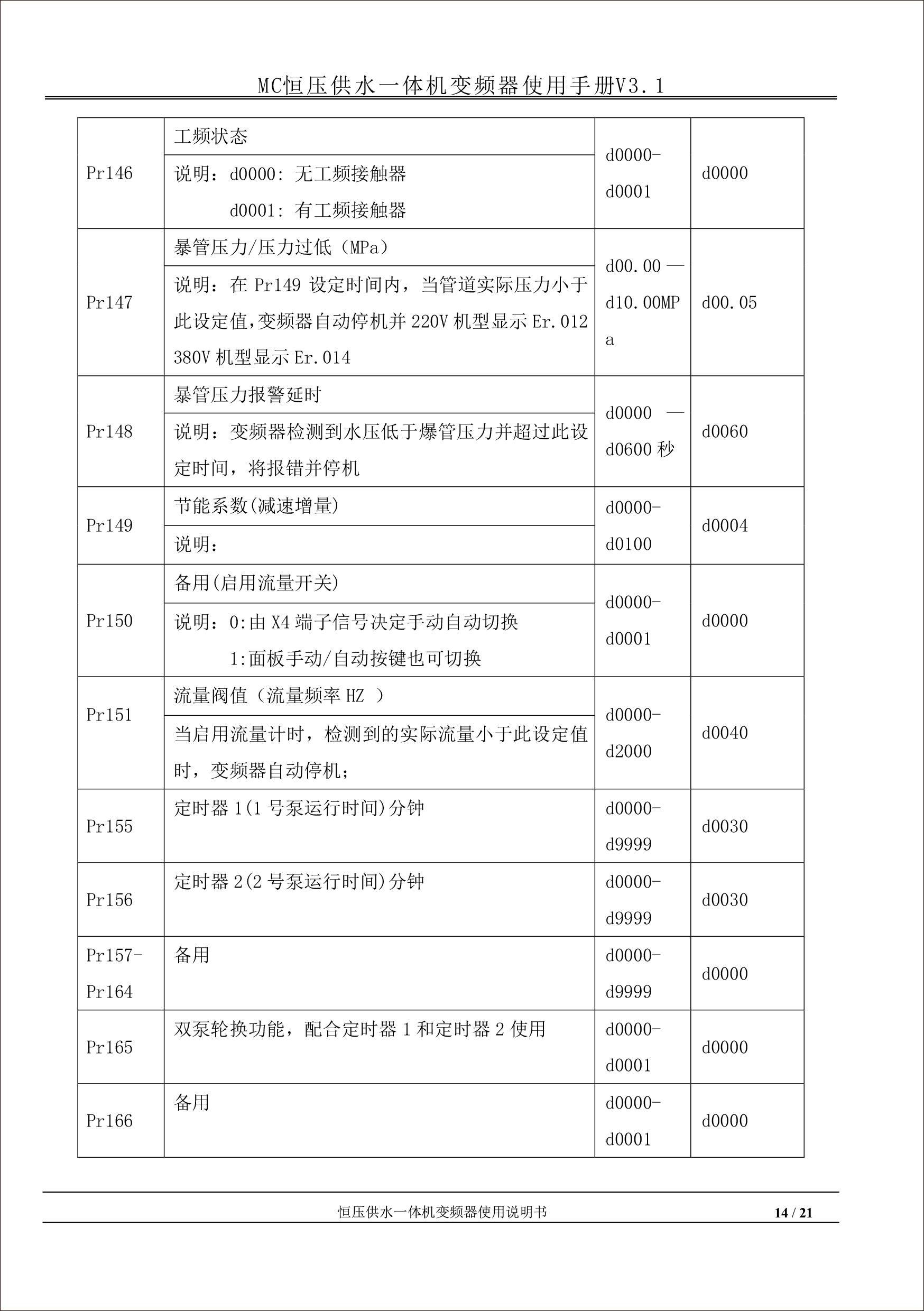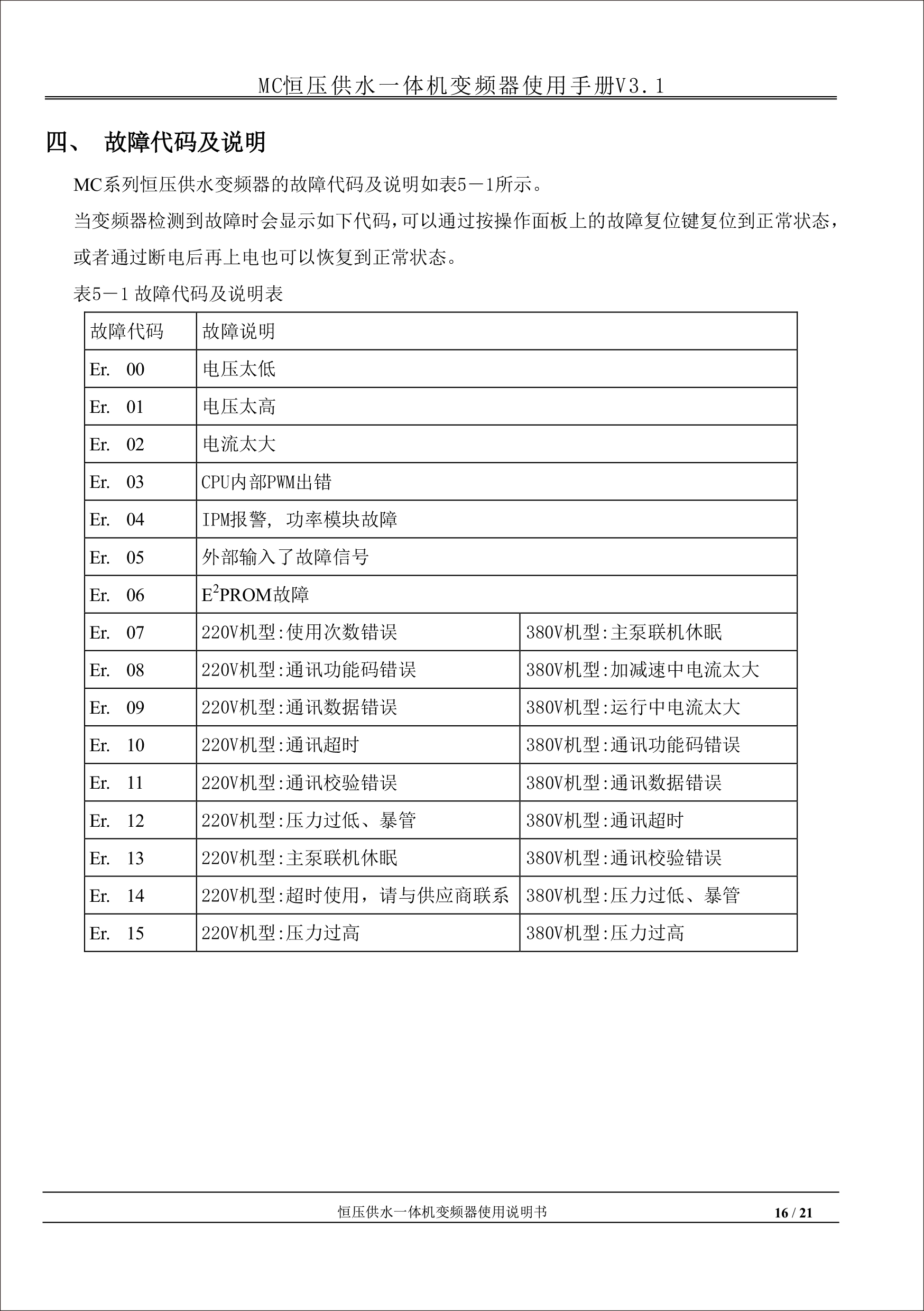 MC恒壓供水一體機變頻器使用手冊V31-181205